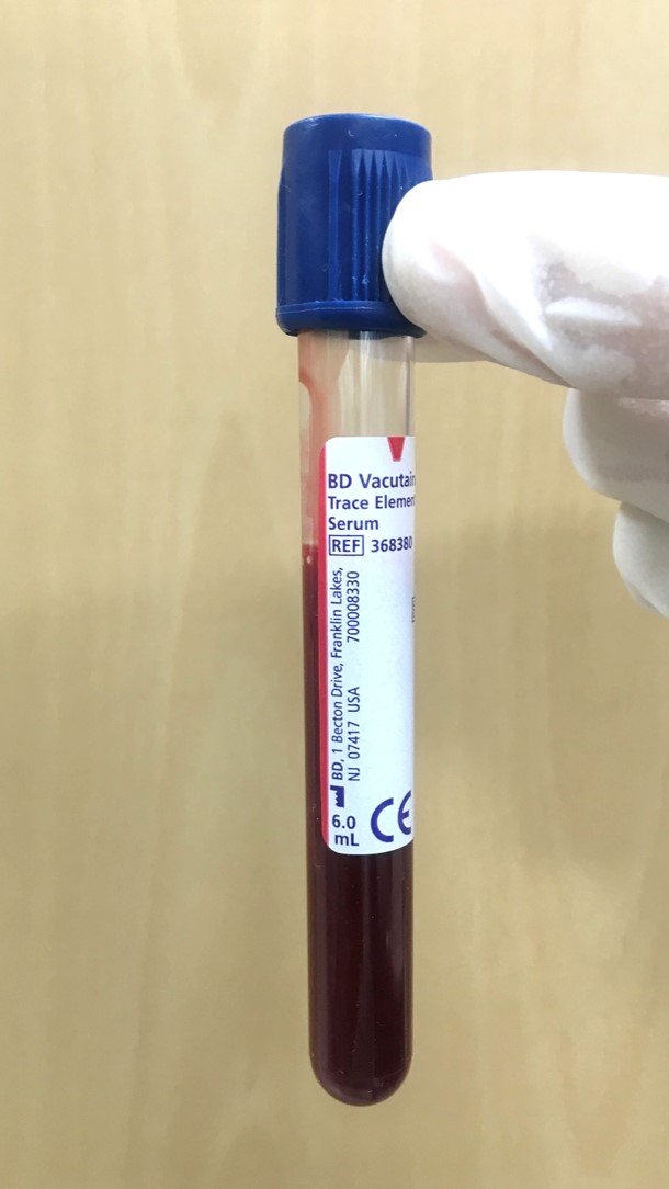 게시판 내용 검사분류코드 L71 검사분류명 외주검사 검사항목코드 L7372 검사항목명 Se(Selenium)(외주) 참고치 95.0-165.0 단위 ng/mL 기본검체 Serum-metal free 6 ml 검체용기 이미지