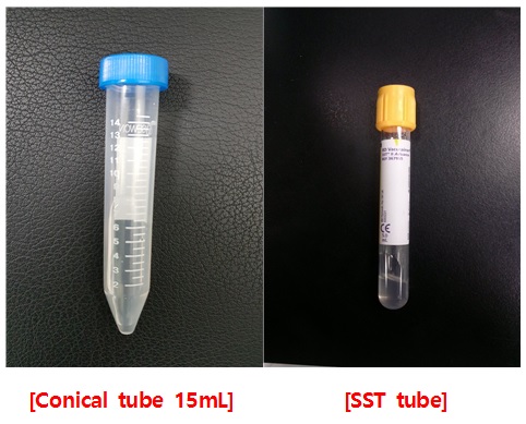 CSF - Conicaltube 15mL, serum - SST tube |