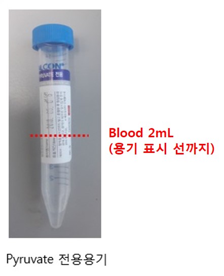 : 검체를 채혈한 후 즉시 Pyruvate 전용용기(제단백용액)에 전혈을 넣어야하며, 즉시 넣을 수 없을 경우