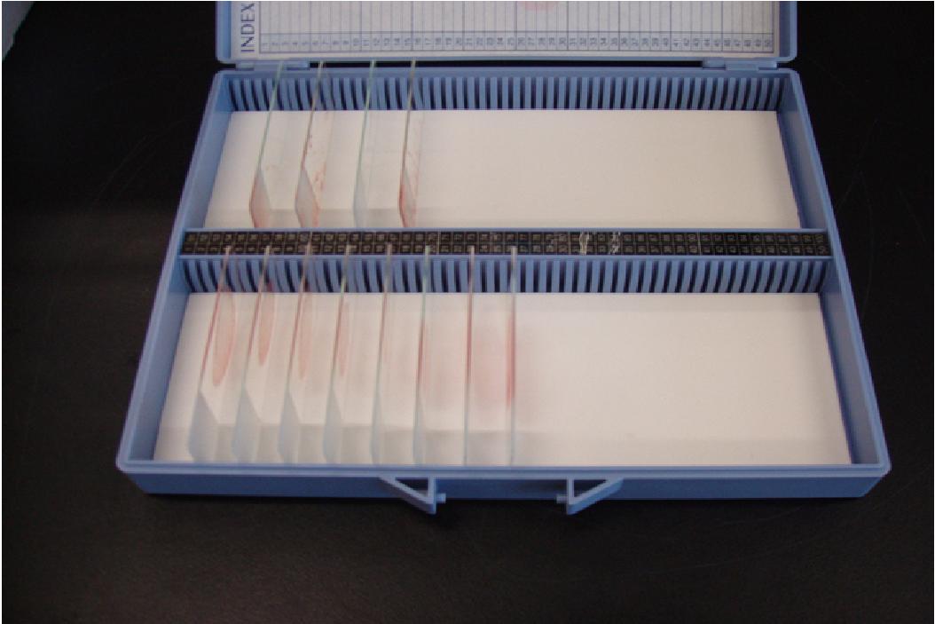 Acid phosphatase stain은 T-림프구 계열 질환과 hairy cell leukemia 진단에 이용. 특히 hairy cell은 acid phosphatase 양성 염색이 tartrate를 처리해도 없어지지 않는 특징이 있어 tartrate resistant ACP (TR ACP)검사로 확진함